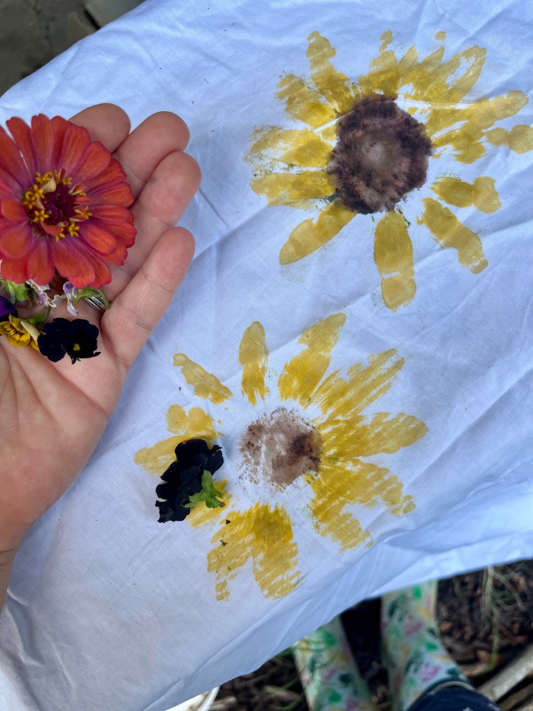 I had this vision in my head. One of those beautiful, slow-living moments pulled from the pages of a storybook. I imagined using the flowers we gathered as a family to make hand-printed fabric. Something soft and cottony, covered in botanical silhouettes. Something I’d sew vintage lace around the edges of. Something we’d use as a tablecloth—a beautiful mess of petals and memories to eat our meals on.